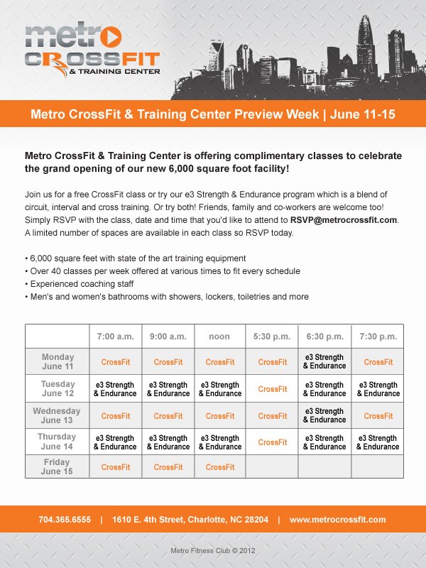 We have created a new Facebook page specifically for Metro CrossFit. Please “Like” our page and begin to follow the new page for any updates. We will be using this page to communicate with each other outside of the facility. Please check daily and we will also be putting up a white board specific to upcoming events at Metro CrossFit.